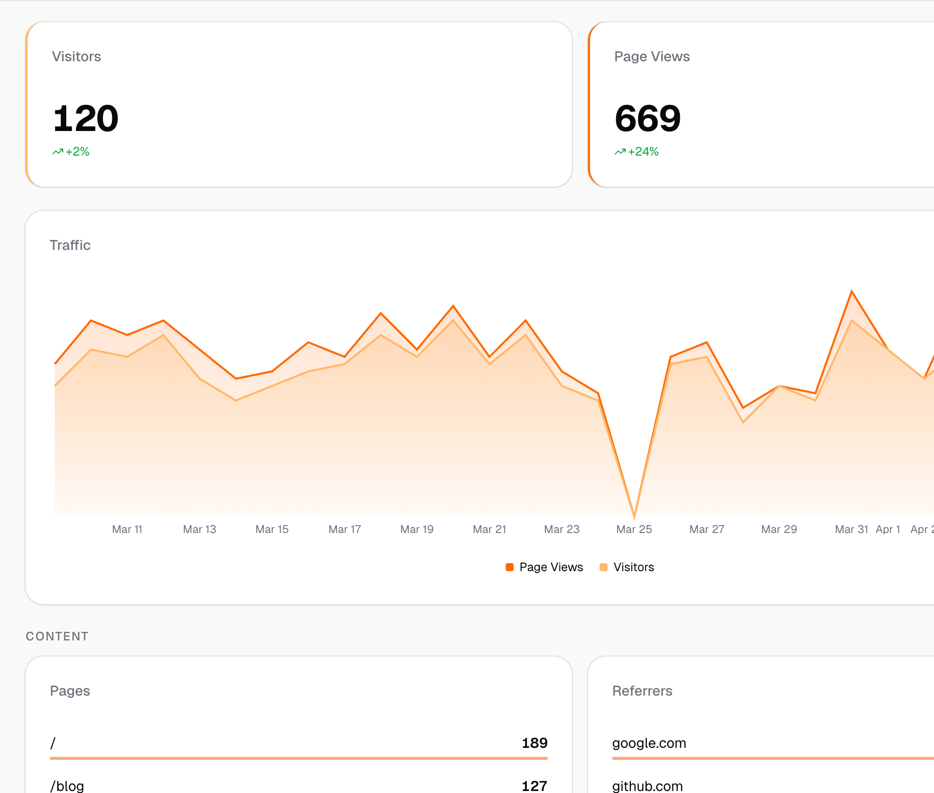 Get detailed insights into your website's performance with built-in analytics. Monitor visitors, engagement, and conversions.
