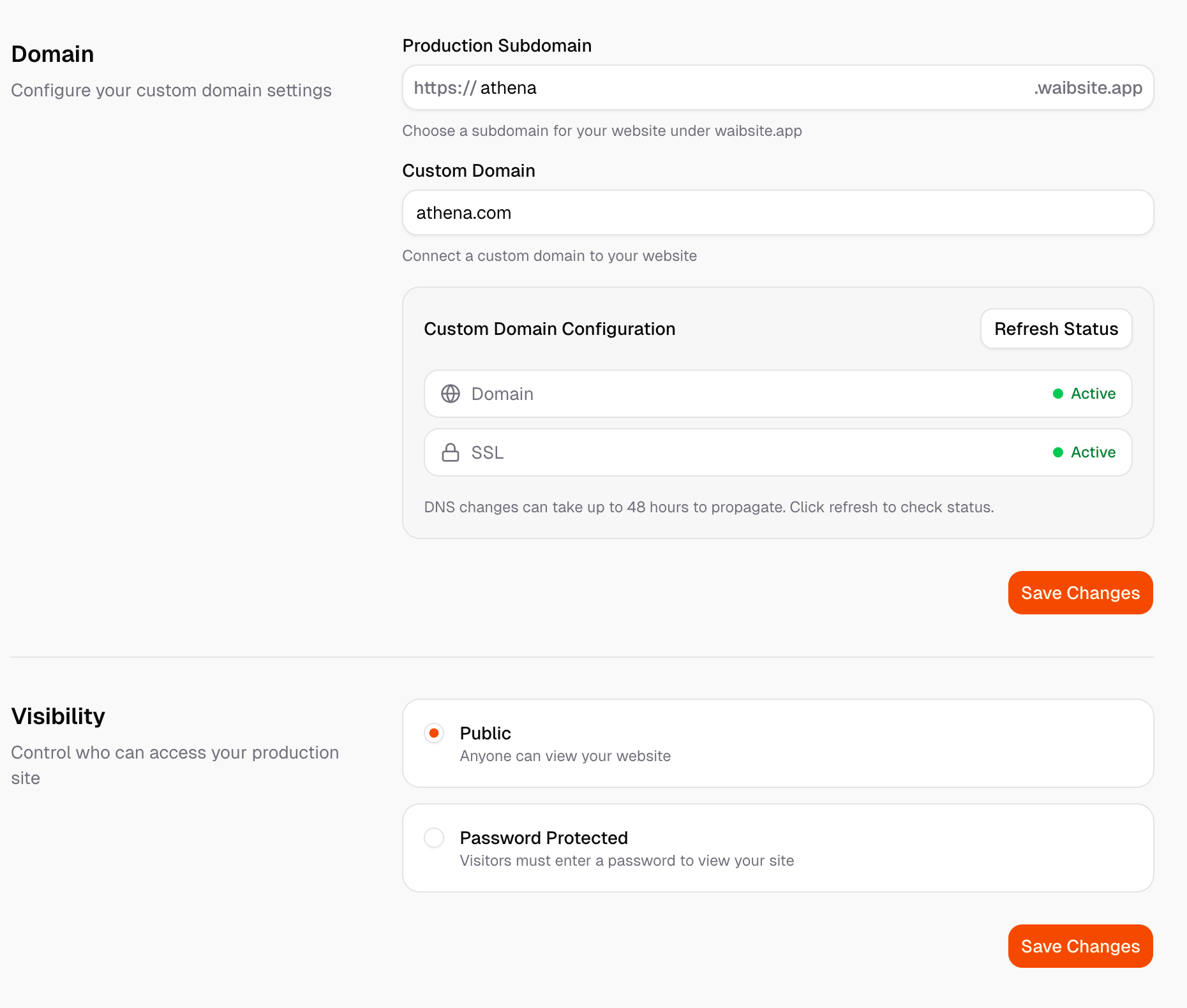 Register and connect your own custom domain to give your website a professional, branded presence.